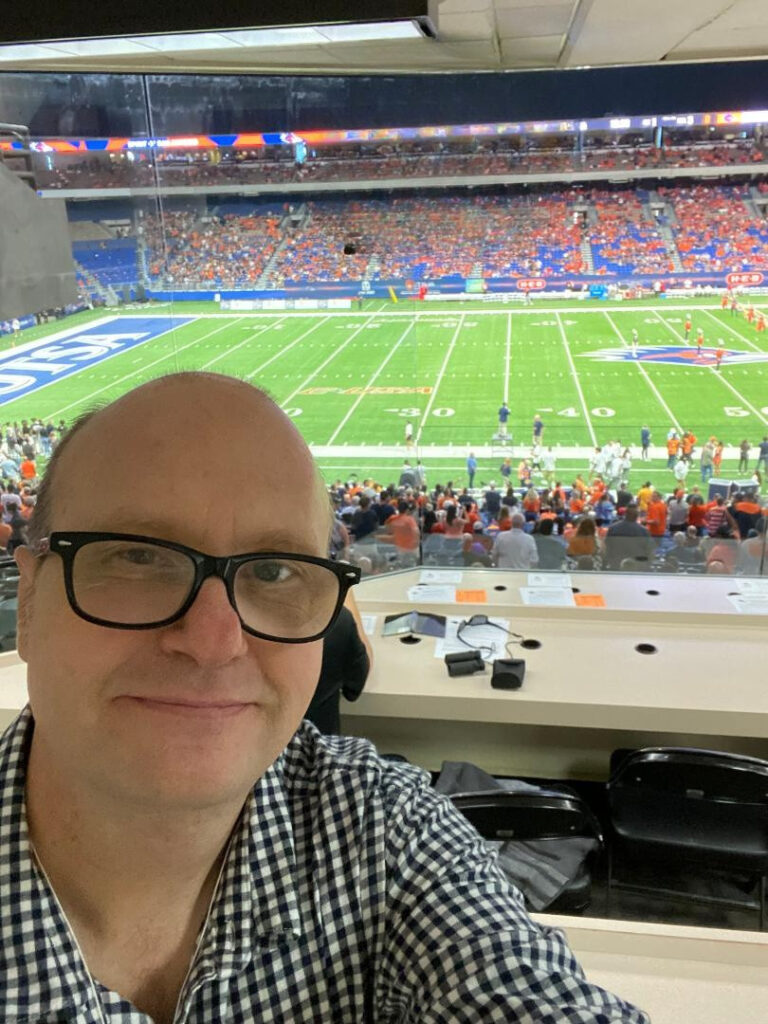 He spent years on the radio calling high school play-by-play and anchoring citywide postgame coverage in Central Texas, where every snap counts under the Friday Night Lights.